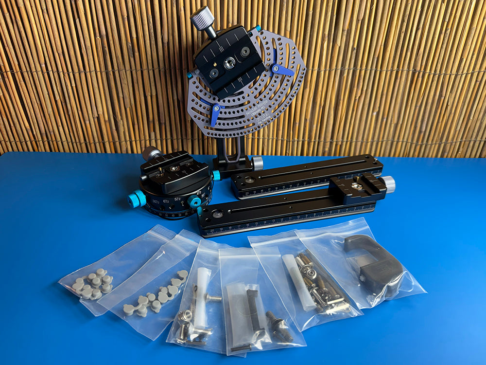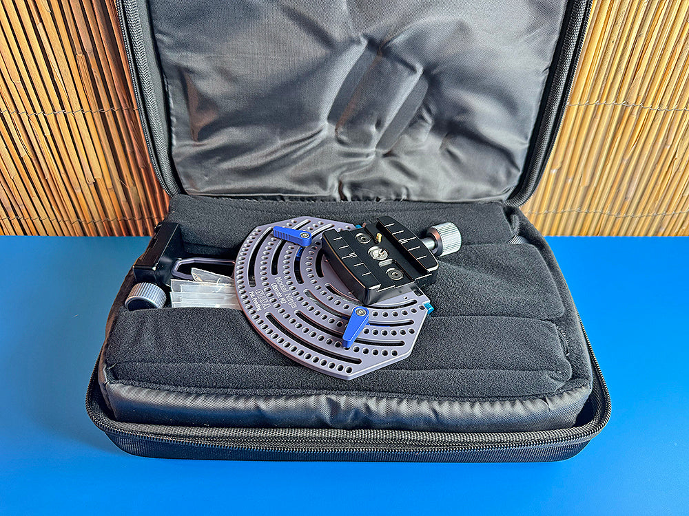 Level: Semi pro - Pro. Features: Arca Style Modular Design, Strongest, Repeatable Results Uses: Landscape, Super High Resolution, Gigapixels, Commercial, HDR Cameras: DSLR`s, Medium Format, some Large Format Lenses: M1 Series 8mm - 200mm / M2 series 8mm to 400mm+ Top-of-the-line. This manual pano head is designed for panoramic photography. The M2 Giga, is designed for gigapixel high-resolution imaging using telephoto and super telephoto lenses. Our unique patented and patent pending design allows precise positive stops of 7.5/5/4/3.75/3/2.5/2/1.5 intervals on the upper rotator, which can be engaged and changed on the fly by simply switching 1 or 2 levers. When paired with our Advanced Rotator D8II (precise click stops at 30, 15, 6, 5, 4, 3, 2.5, 2), it supports up to 700mm equivalent focal length with camera in landscape orientation, or 550mm equivalent in portrait orientation. Due to the precision of the rotators, each photo can have precise coordinates which help stitchers to quickly align the photos just like photos captured by the high end robotic head. There will be no more stitching issues for a featureless area such as sky or blank wall. Being a manual pano head, Nodal Ninja Ultimate M2 Giga is much lighter than a robotic pano head for the same load capacity. There is no battery and charger to carry and no worry of the battery running out during a shooting. Due to the intuitive design, M2 Giga can excel a robotic head in terms of speed of capture when a number of photos are less than 600. The rotator indexing can be turned off for free motion, allowing photographers to capture moving elements such as in a sports panorama, or to capture second shots for an area prone to stitching error by change the overlapping region. Nodal Ninja Ultimate M2 Giga is a pre-assembled unit. NOTE TO EXISTING USERS OF M2: THE M2 TO M2 GIGA UPGRADE KIT (F9010) IN NOW AVAILABLE AT A SPECIAL DISCOUNTED RATE. Other important features: Nodal Ninja Ultimate Modular System is based on Arca Swiss compatible system, the industry standard for high-end photographic support. The M2 is a design with many years of refinement, integrating years of feature wishes from customers. It fills the gap of Nodal Ninja product line for photographers making high-resolution panos or mosaics with super telephoto lenses. Furthermore, it can act as a gimbal arm for smooth rotation of heavy telephoto lenses at its center of gravity. Features and Highlights: Modular design means an easy upgrade from the previous model and to future models. Easily support long telephoto lens up to 3kg (6.6 lb) in weight. Full bearing loaded rotators for smooth and steady rotation. Upper rotator with adjustable friction to serve as a gimbal arm. Upper rotator with laser marked index ring with fine 2.5 intervals (regular M2). Upper rotator with precise positive stops of 7.5/5/4/3.75/3/2.5/2/1.5 intervals in Giga model (Patented and patent pending design). Upper rotator can be engaged and changed on the fly by simply switching 1 or 2 levers in Giga model. Upper and lower rotators with indicators for starting and ending positions, ideal for making mosaics with a large number of images. Photographers can first compose the mosaic, then set the starting and ending positions horizontally and vertically. The indicators will make sure no images are missed and no excessive images are taken. With RD8-II (precise click stops at 30, 15, 6, 5, 4, 3, 2.5, 2) to support up to 700mm equivalent focal length with camera in landscape orientation, or 550mm equivalent in portrait orientation. Precision CNC machined from aircraft aluminum and hard anodized, meaning high precision, accuracy, durability and long lifetime. Optional: M Series Nadir Adapter (F8301) M1L M2 Series Vertical Extender (F8310) Stop Plate Arca-Swiss Style 2ea (F2106) Camera Plate - This listing does not include a camera mounting plate. M2 Giga with RD8II without camera plate weights 1.88kg. Full package with spare and hardshell case weighs 2.33kg. M2G vertical rail 760g. M2 vertical rail assembly 550g (difference is 210g). What`s in the Box Includes: M2 Giga Plate RD8-II (F1180) (30, 15, 6, 5, 4, 3, 2.5, 2) to support: QRC-65 (Lower Rotator Quick Release Clamp)* Jaw length: 65mm (F8325) MFR-210 Double Dovetail (Lower Rail) Length: 210mm (F8150) M2 Upper Compression Lock Rotator MFVR-170C Double Dovetail Vertical Rail with Integral QR Clamp (Vertical Rail) (F8152) QRC-65 (Upper Rotator Quick Release Clamp) * Jaw length: 65mm (F8325) MFR-170 Double Dovetail (Upper Rail) Length: 210mm (F8150) QRC-40A (Upper Rail End Clamp) Jaw length: 40mm (F2100) Case (F8117)