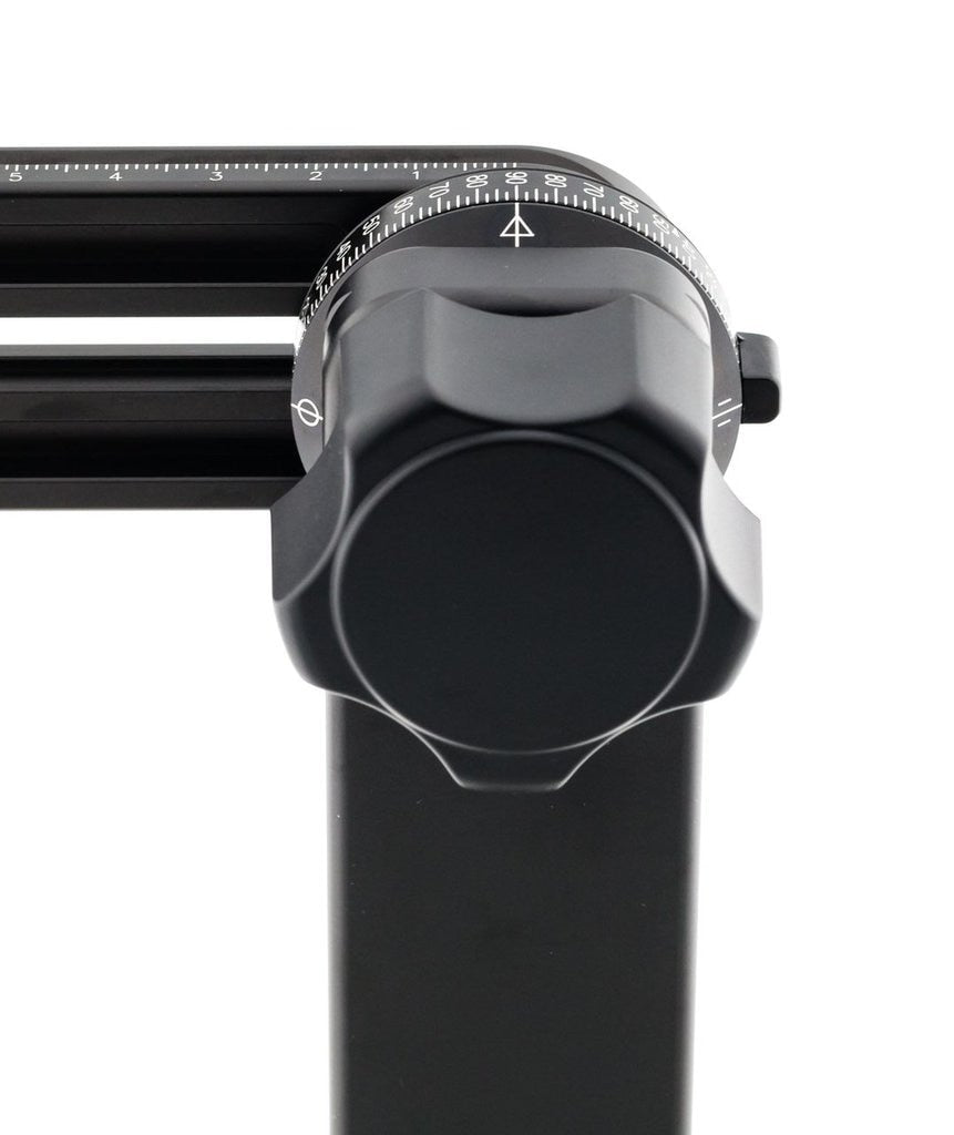 - Supporting up to 200mm equivalent focal length (camera in portrait orientation) with detent lock (higher focal lengths possible with free rotation).