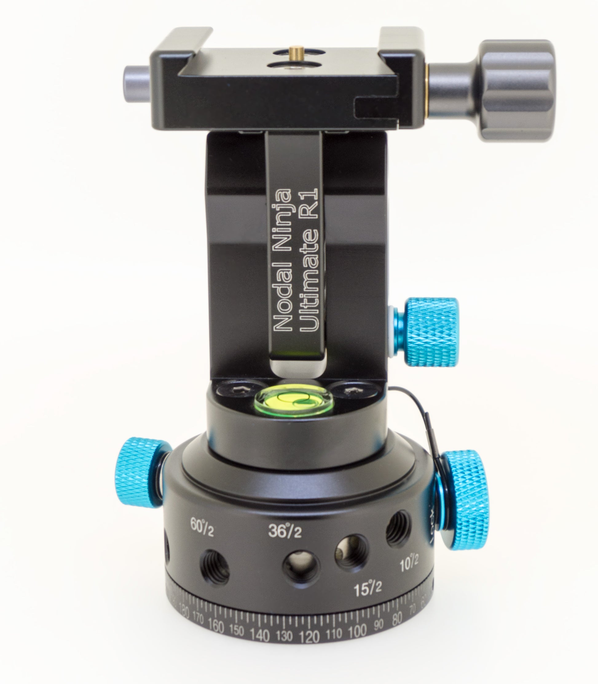 LENS RING CLAMP SOLD SEPARATELY. A single row pano head designed for use with circular and full frame fisheye lenses. The R1 pano head incorporates a unique cantilever tilting option suitable for different fisheye lenses on different sensor formats under different applications. Please keep in mind the canter-lever design is not intended for user to shoot the nadir (down shot) or zenith (up shot) by simply tilting down or up from original position. Doing so skews the NPP of a lens creating errors in stitching. While there are some using advanced workflows that may offer solution, these usually come at the cost of added work in post-production processing of images. Generally speaking, the zenith shot can be eliminated if shooting with slight tilt up. With use of optional R1/R10 Nadir Adapter there is also technique to shoot the nadir (down shot).